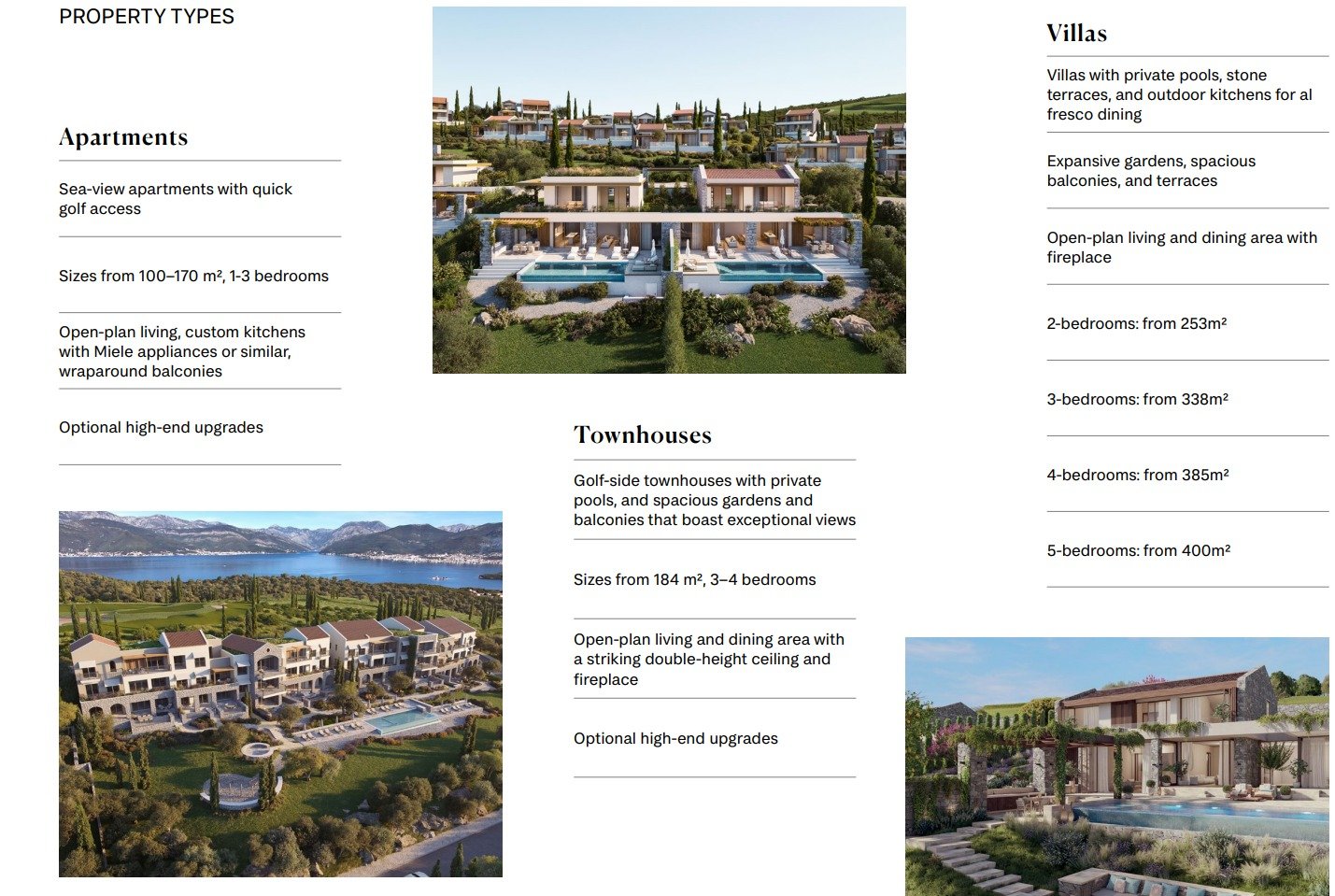 Set high above the Adriatic coastline, The Peaks Apartments represent the most exclusive apartment offering within Luštica Bay. Located in a prestigious hillside setting and surrounded by Montenegro’s first 18-hole championship golf course, these residences provide breathtaking views, privacy, and a refined Mediterranean lifestyle.