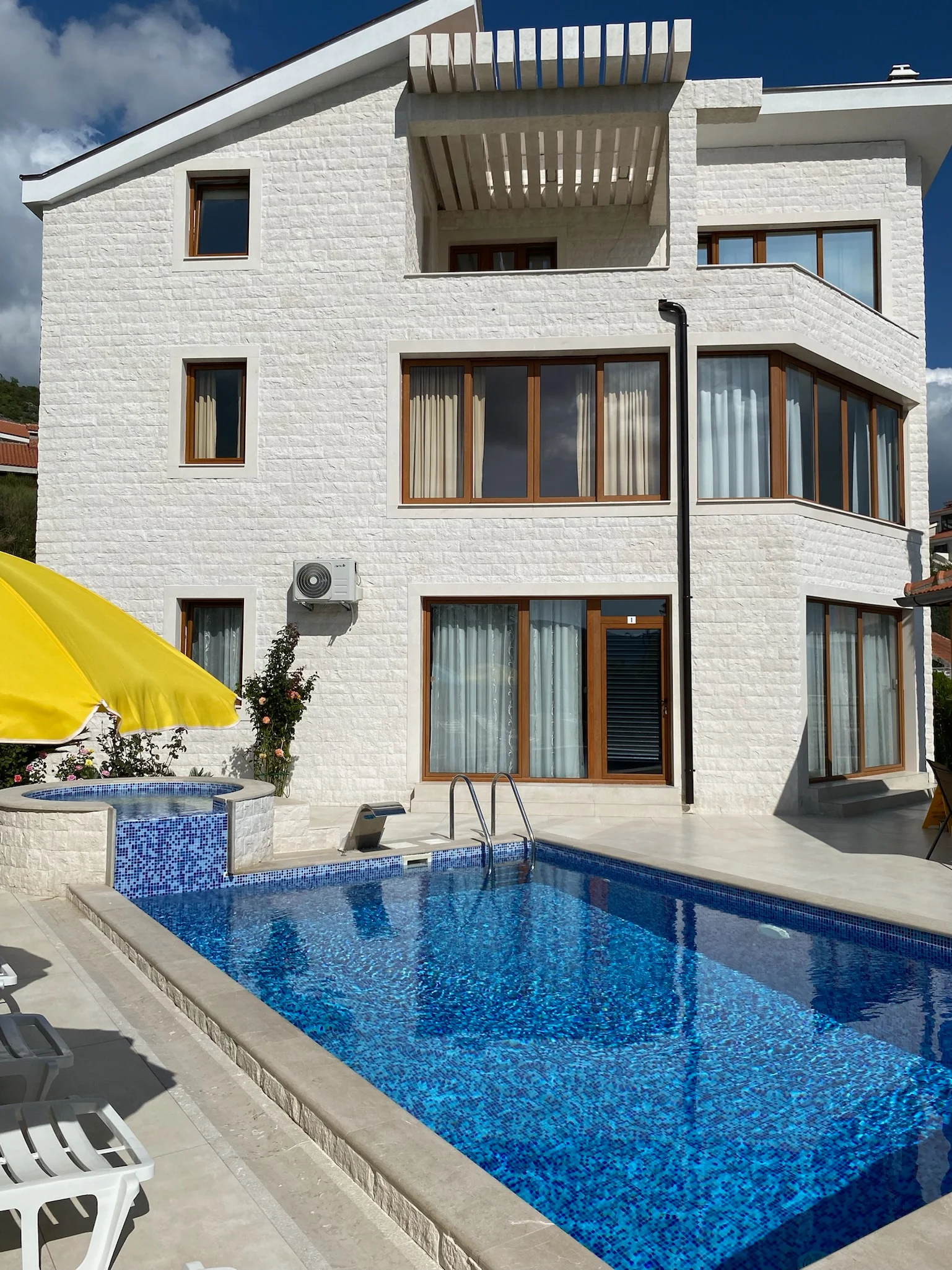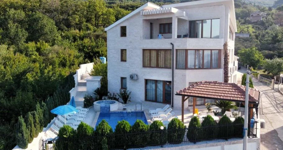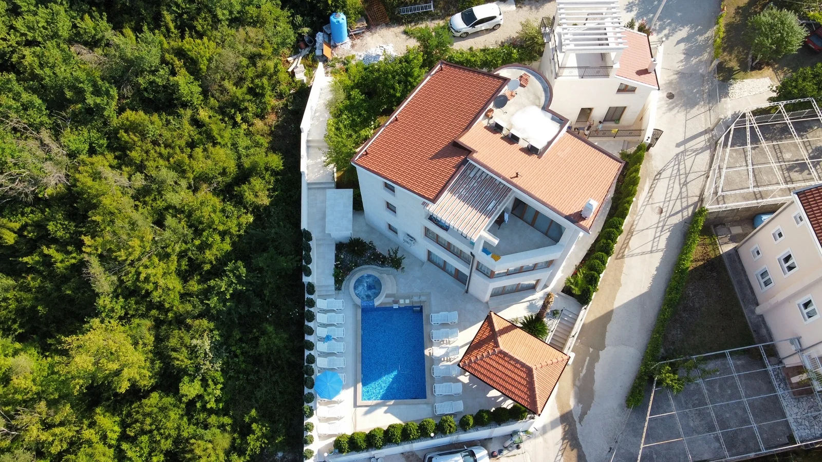 This modern villa features spacious rooms, a bright living area with large windows, and a private pool surrounded by lush greenery. Guests can enjoy full privacy, sunshine, and tranquility, while being just minutes away from the beaches and the historic center of Herceg Novi.